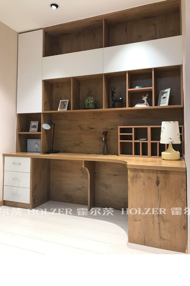 米兰橡木 定制电脑桌、定制博古架