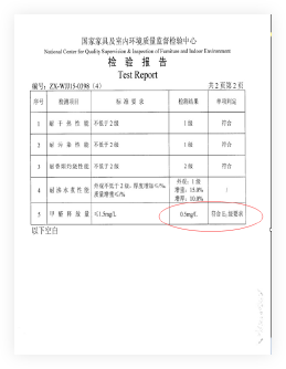 杜拉特(CPL)材质甲醛释放检测结果为0.5㎎/L,国家E1级检测标准≤1.5㎎/L,优于国家标准。