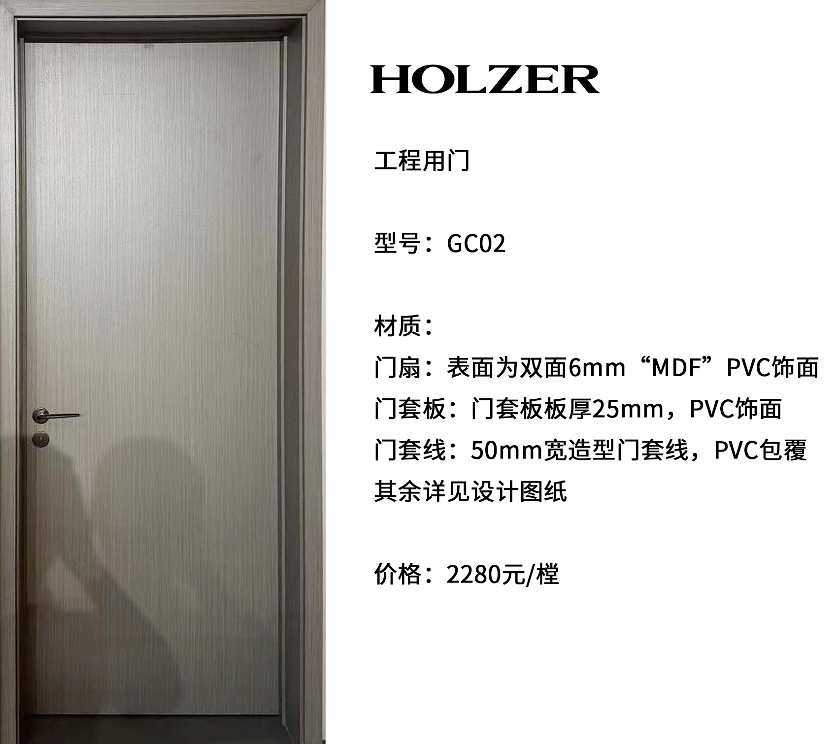 霍尔茨简约银梨室内门GC02