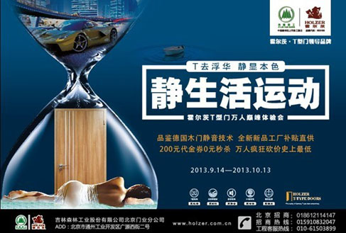 十一黄金假期已经结束,霍尔茨T型门本次在全国发起的“静生活运动”也即将落下帷幕,此次活动,是2013年业内唯一一次具有如此大规模的“木门静音”万人巅峰体验会,通过本次活动,广大市民不仅获得了到霍尔茨全国各大品牌专卖店切身体验“源自德国的T型门静音技术”,领略T型门的超凡“静谧空间”的机会,同时还参与了各类畅销产品