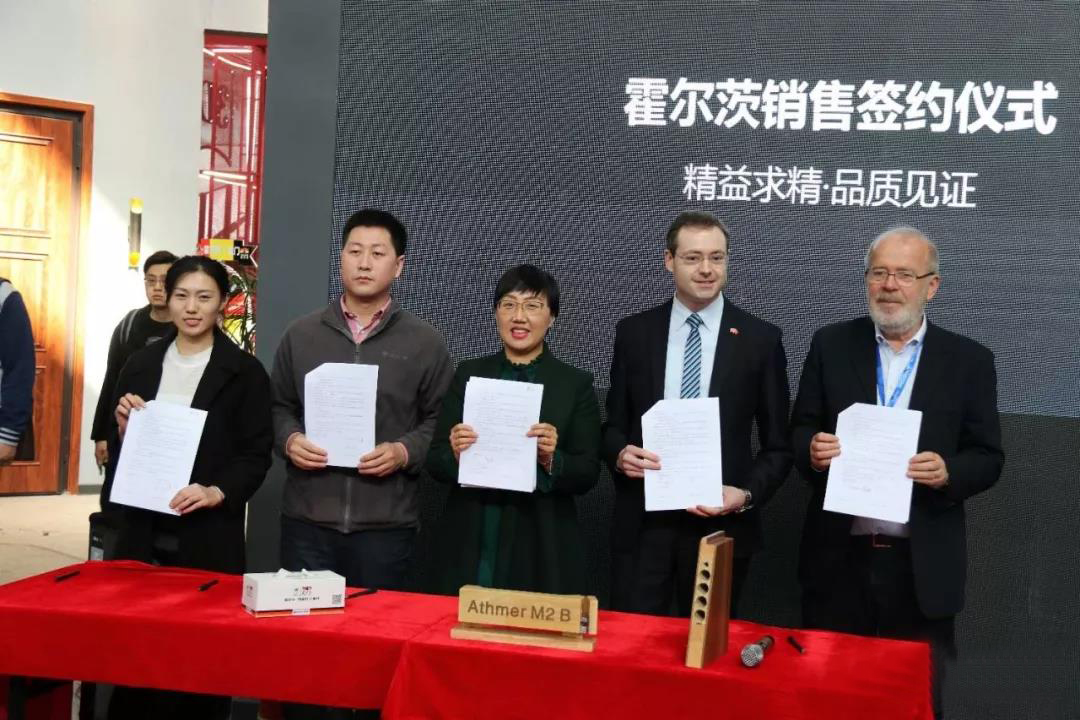 随着3月21日的到来,2018年木门行业的最大一次盛会已经如火如荼的启动了,此次更是首次北京、上海双城同展。国内T型门缔造者霍尔茨木门凭借时尚感十足的展厅和在行业首开先河的新品居室阻燃门受到了前来参展的行业各界人士的一致关注,连续两天霍尔茨展位都十分火爆。22日,霍尔茨木门携手德国邵尔兰特桥洞力学板代表胡伯特、密封材料供应方代表史提凡、五金供应方海福乐代表与来自成都的客户签订了购买协议,与众多行业嘉宾见证了这历史性的一刻,预示着霍尔茨木门在全国战略布局上又向前迈进了一步。