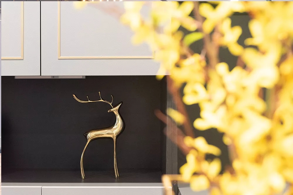 优雅的灰色系,以其强大的包容性被频频使用,也是轻奢风格的最爱。融合了轻工业风和中式美学元素的家装,满足了年轻人对个性的猎奇追求,却不会因太过粗犷而失去家的感觉。黄铜是轻奢家居中最低调而温柔的材质,以它为线条主调贯穿房间整体,既不过分浮夸,也不会过分朴素,还以其自有的温柔光泽,让家居生活流淌出高贵与复古。灰色为底,金色点缀,工而有意的手法描摹现代简约的气质,宁静中流露着不经意的优雅。